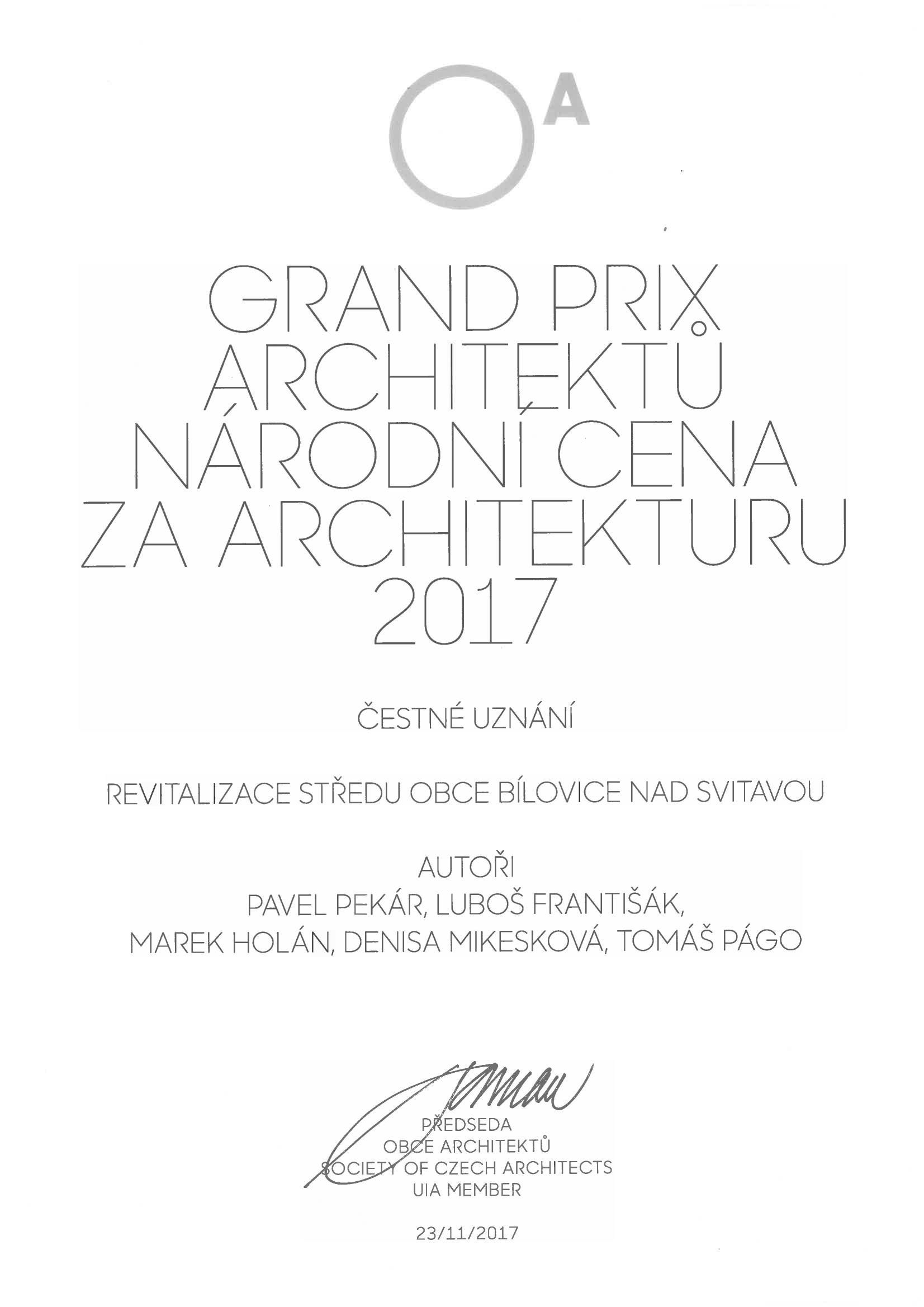 GRAND PRIX ARCHITEKTŮ - NÁRODNÍ CENA ZA ARCHITEKTURU za rok 2017
